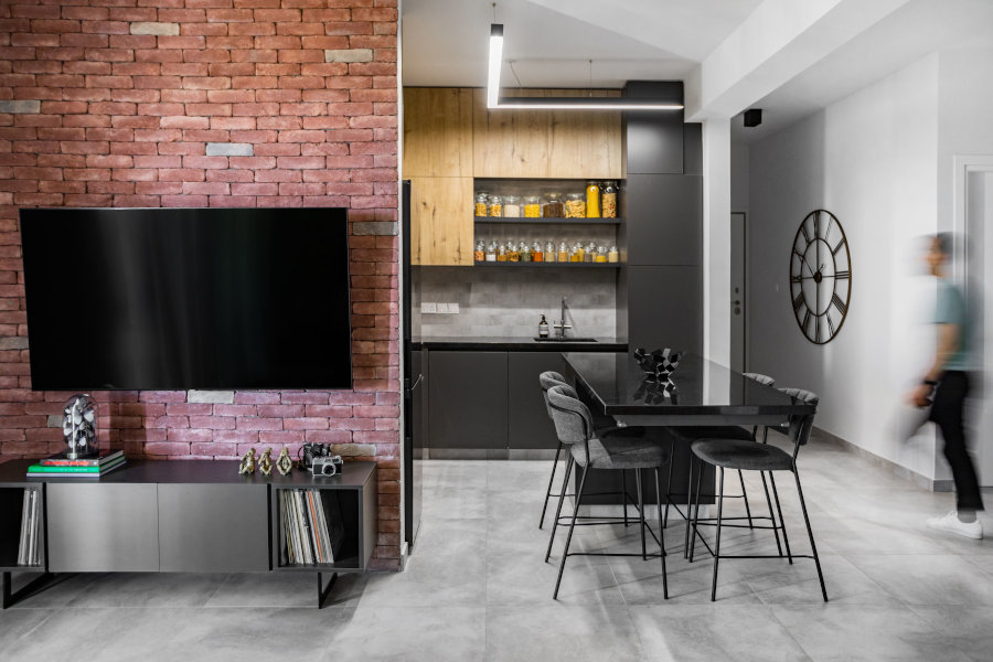 Inspired by the lofts in Soho and Brooklyn in New York, this flat’s interior can be easily described as sophisticated yet industrial, with luxurious finishes and materials.