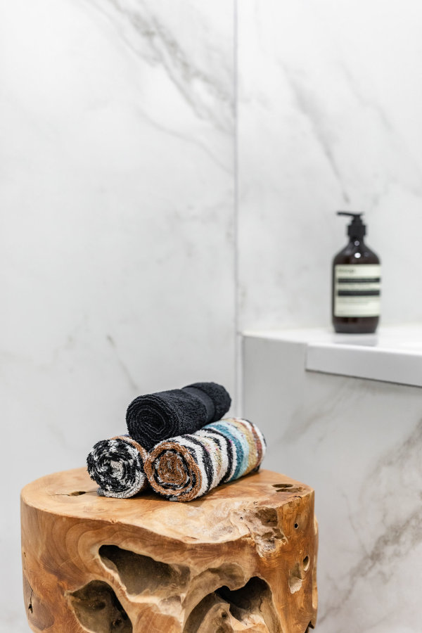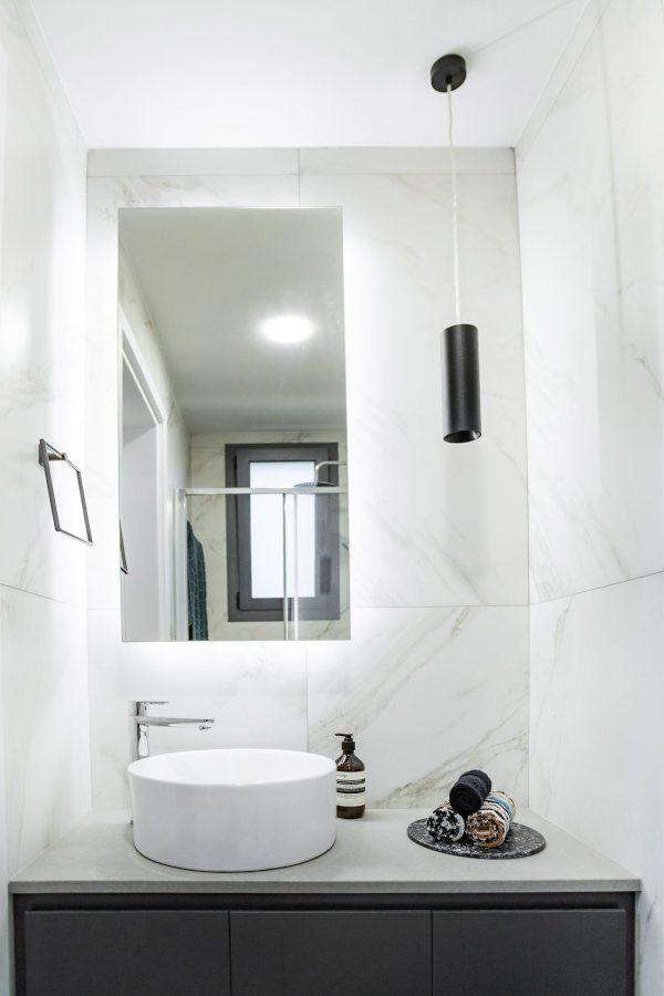 All the materials and furniture used throughout the flat, were chosen to complement and showcase each other the best. This was achieved, initially with the careful selection and combination of materials and finishes for every single room, as well as with the continuous involvement of the client in this creative process.